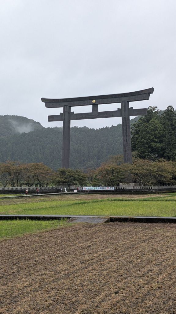 But today, we took a little walk to take a first look at the Otorii Gate, a 34m high Tori Gate (the biggest in the World), in rice fields, at the site of the original Hongu Taisha Shrine, which was moved in 1889, after a devastating flood.