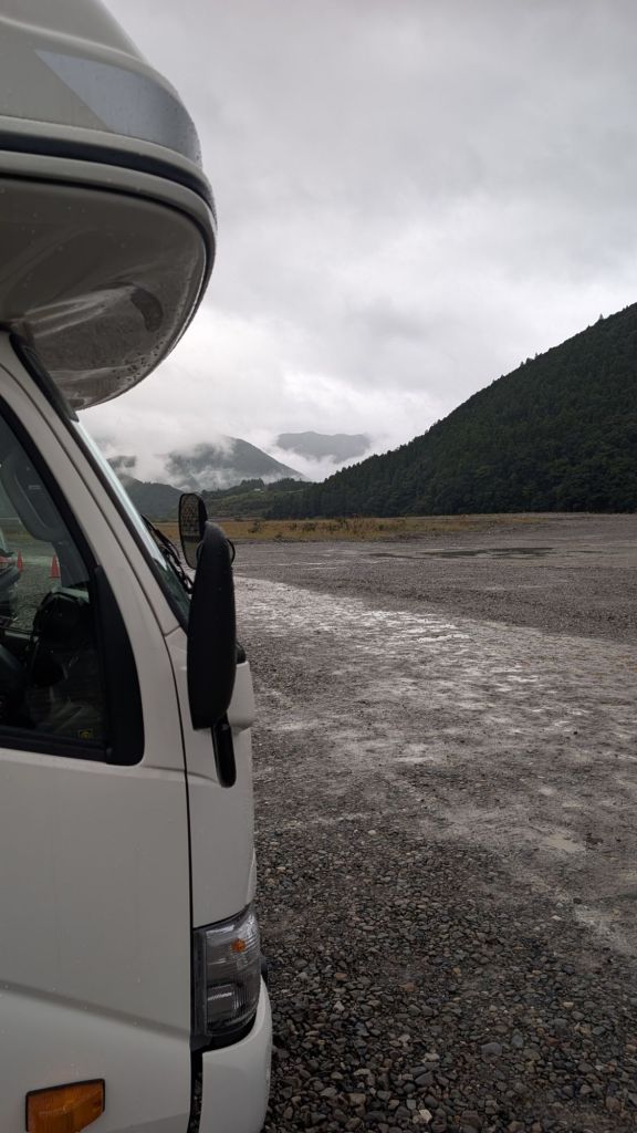 Once washed and freshened up, we continued on to Hongu, parking in the huge car park, down on the riverbank. We’ve seen photos of this car park filled with cars, but as I type this, we are the only vehicle here.