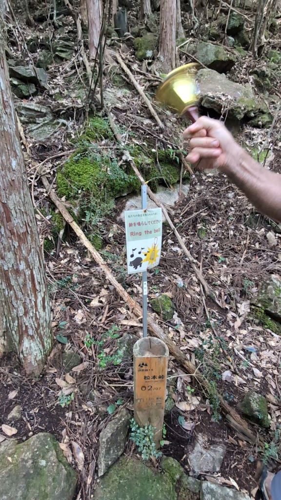 To the side of the path was a log with a bell on top of it, indicating for walkers to ring the bell to deter bears. We have our bear-bells, but hadn’t expected to need them today, so happily took advantage of the one by the path We rung it loudly, as there were notices that a bear and its cub had been spotted on the path just under 2 weeks ago, so perhaps we did need to make as much noise as we could.