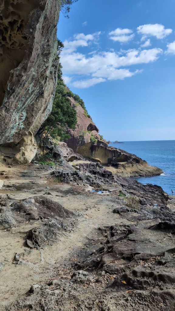 The legend is that Tagamaru, a demon pirate king had taken refuge in the cliffs, in the 7th century, and a Shogun was sent to track him down by the Emperor. The Shogun was guided to the coast by a celestial apparition, but when they arrived, they couldn’t get close because of the dangerous rocks and sea.