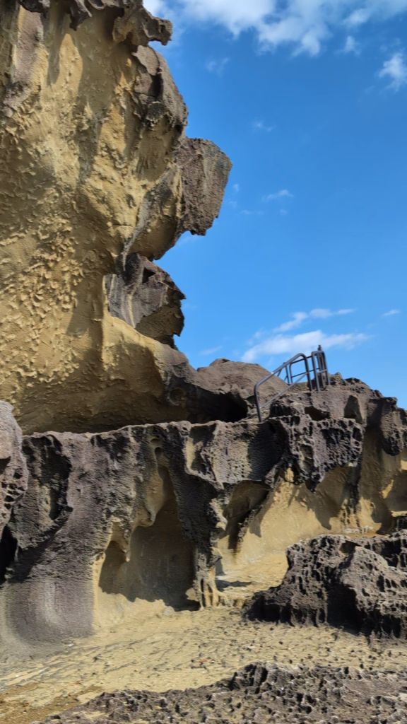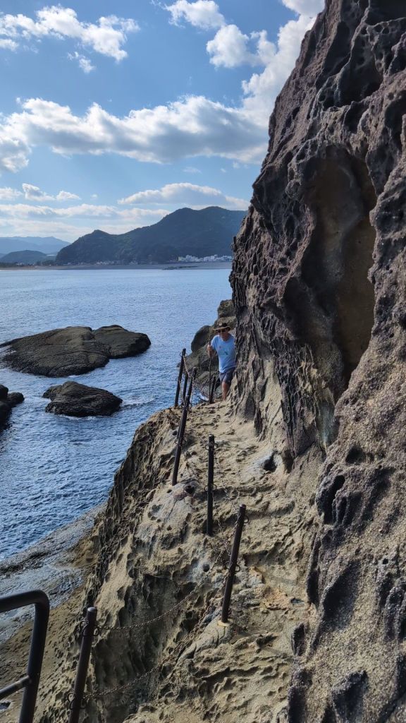 The cliffs are called Oniga-Jo, and are created from a soft volcanic rock, which has been eroded by the sea to create dramatic and incredibly beautiful cliffs, with the turquoise sea breaking just below the path.