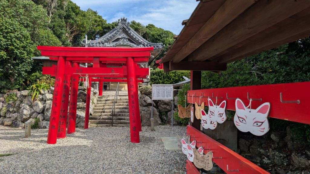 Of course, we had to find out more and discovered that we had walked into the Katadainari Shrine, which enshrines a white fox. It is said that the white fox arrived in the village in the 1800s, and strange things started to happen. The villagers started to worship it, and from that, the Shrine was established, and has attracted worshippers, as the guardian deity of fishermen and fishing.