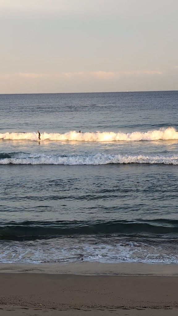 Arriving back at the van, we pulled out our chairs and sat on the sea-wall watching the sea, and the surfers who were making the most of the clean waves, and autumn sunshine.
