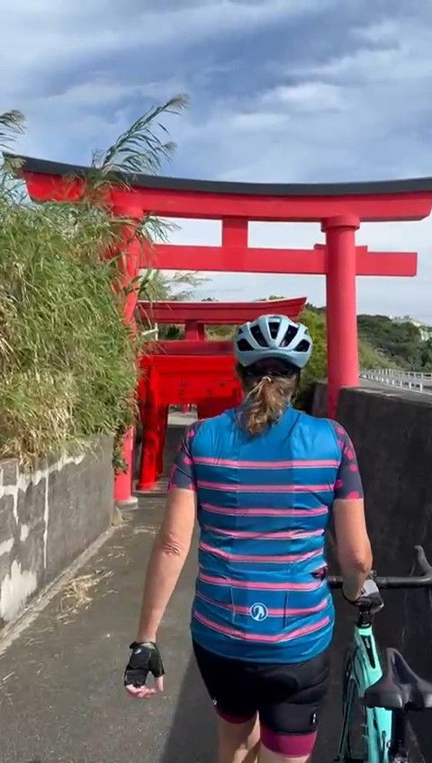 As we cycled along one bay, we noticed a large red Tori Gate to one side, and decided to take a look at what lay beyond it.
