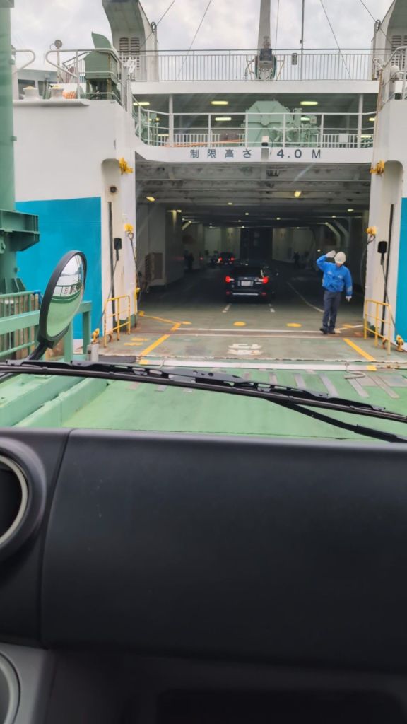 After taking the ferry from Shikoku to Wakayama, we felt more confident with what we needed to do, so arrived at the port in good time, were waved into a lane to board, and went straight to the office to buy our ticket. At least we knew that we needed to take the vehicle’s certificates with us, which are part of the booking process.