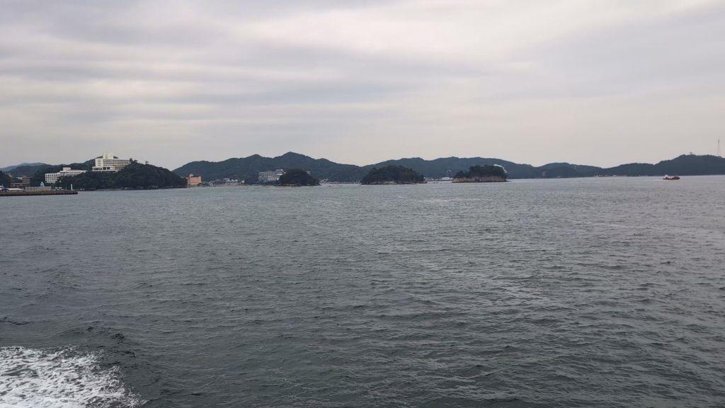 At first, it was all very gentle, as we set out into the bay, between the islands, passing pearl rafts and fishing boats. But once we had cleared the headland, it all got a bit ‘bouncy’ for a while, before we fell into the protected waters of Irago port.