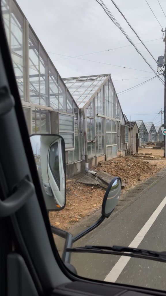 Driving away from Irago, it felt as if we were in a different country, as it was the first, really flat area of Japan that we had seen. Here, there is a vast beach to one side of the road, which continues for miles, and the land is covered with greenhouses and huge market-gardens, for almost as far as the eye can see.