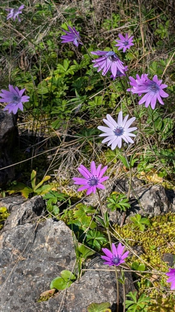 Then long tracks and trails that snake their way through woodland, carpeted with early freeisas and stunning pink flowers too.
