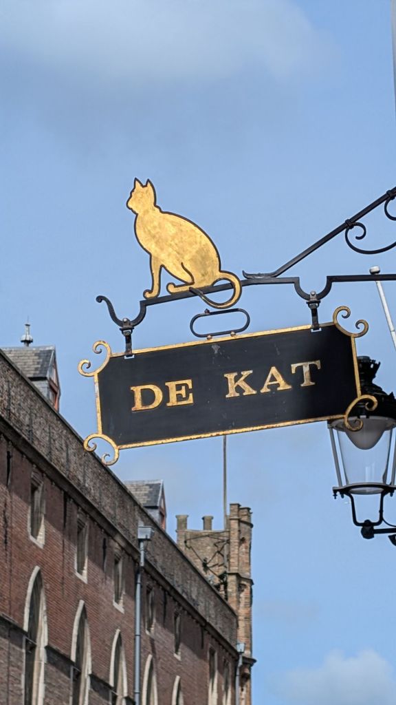 Noting the use of under-stated, elegant signs that added to the ambience of the city, rather than some we have seen in other places that detract from the beauty of the place. The Cat really caught my eye.