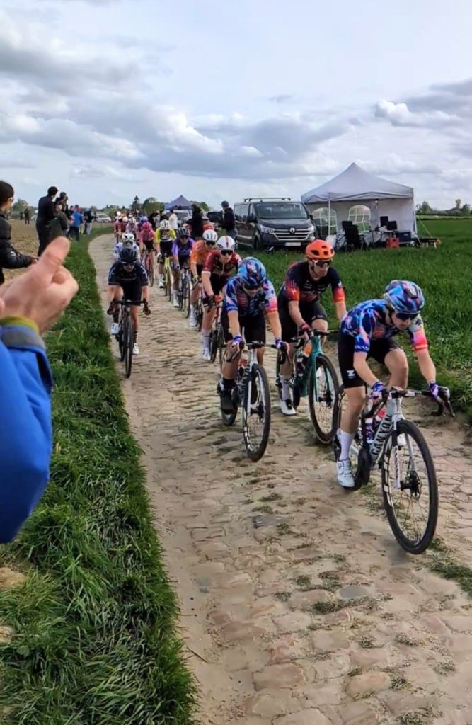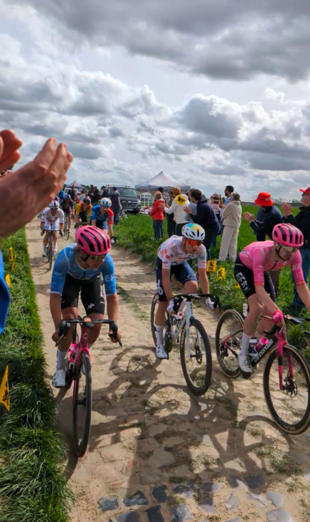 After years of watching Paris Roubaix and Paris Roubaix Femmes from the comfort of the sofa, today, we finally watched the racing from the side of the cobbles, on the Mons-en-Pévèle sector.