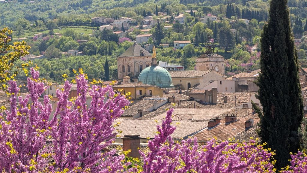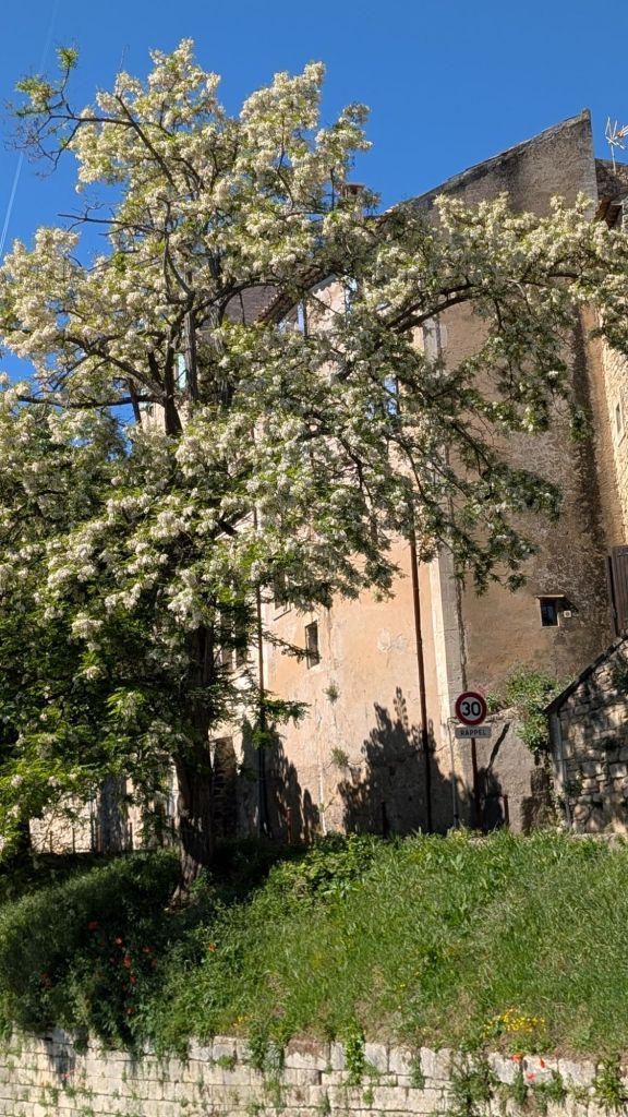 At this time of year, the hills around Apt are covered with the fuschia pink blossom of the Judas Trees. It’s an almost impossible pink, that looks as if Mother Nature has dripped a pot of Neon Pink paint, across the valley.