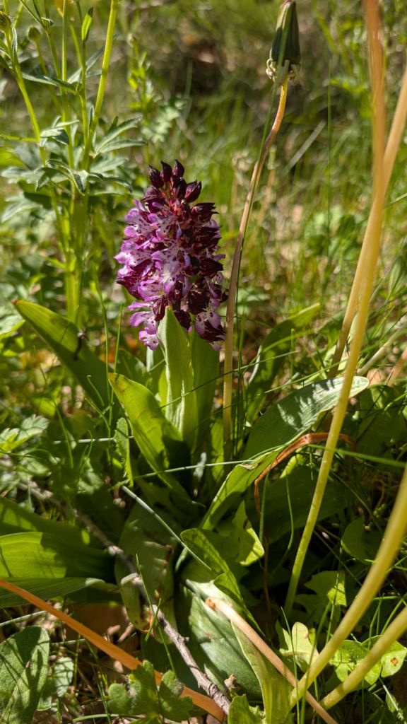 Cycling towards Bonnieux, we passed through the vineyards, noticing how the twisted vines have been softened by leaves, and the verges are filled with colour, with vibrant purple cones of Orchids, surrounded by daisies and hawkweed too ..
