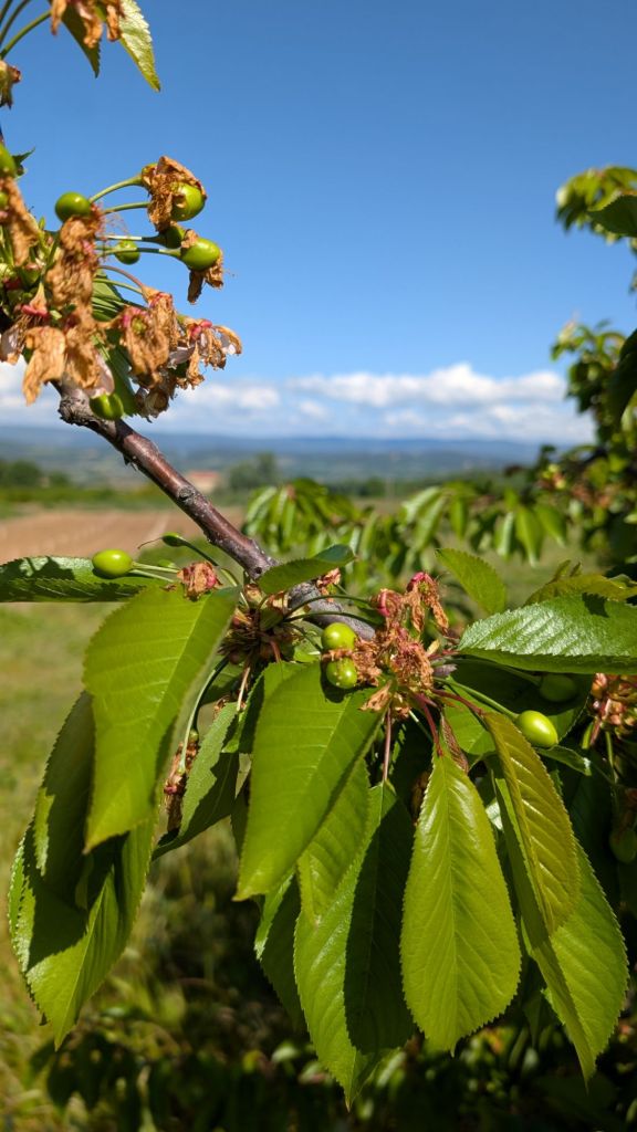 The cherry blossom has fallen, leaving the first signs of this year’s fruit; small green balls, which will quicly swell and turn red over the coming few weeks