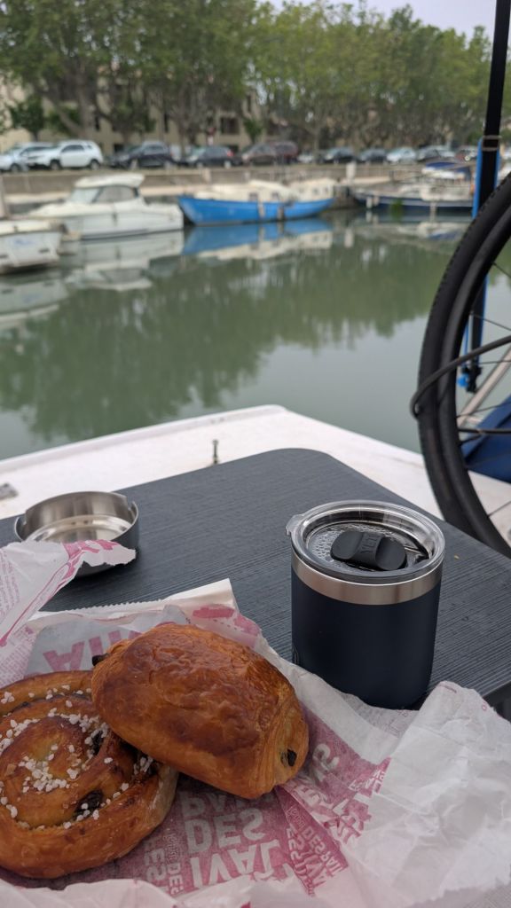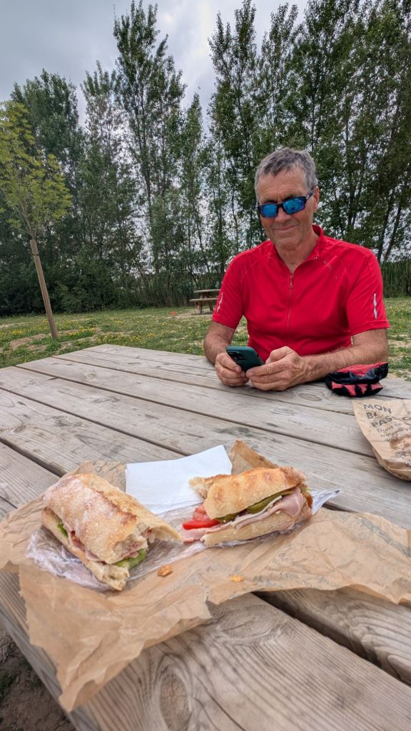 We followed the roads through towards Saint Gilles, where we had stopped for coffee on our first long ride home from the UK in 2023. I remember it well, as just after Saint Gilles, we crossed a bridge and passed a sign telling us that we were entering the Provence Cotes-D’Azur Region. This left me in an utterly soggy mess at the side of the road, as I never imagined that I would be able to cycle that far through France. So it was nice to revisit the memory, without the tears, this time!