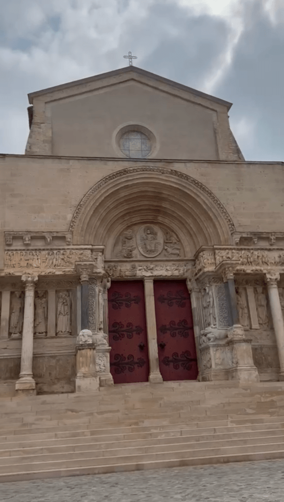We carried on into Saint Gilles, which (off the main road) is a beautiful little place, with an ancient Abbey in the heart of the town.The Abbey is on the Saint Jacques De Compostella Pilgrimage Route. We hadn’t seen it, last time we visited, but found it today, and the 12th century facade is exquisite.