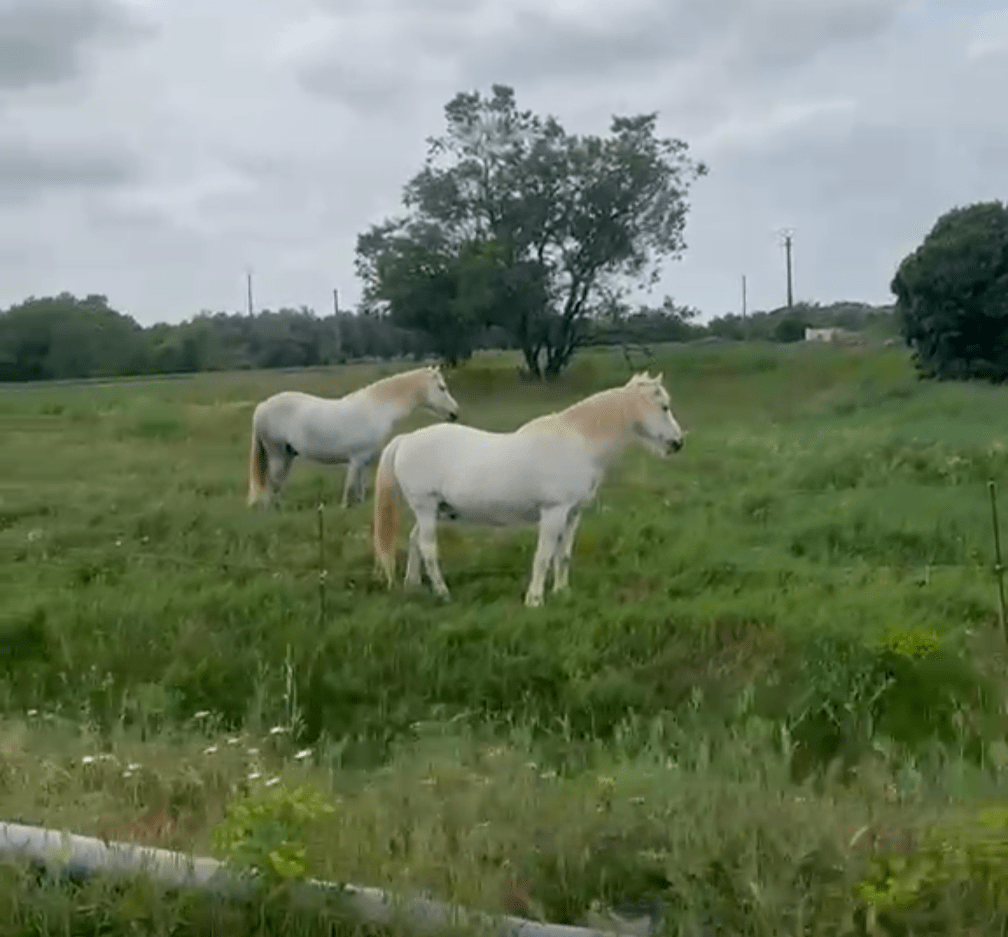 We also passed other signs that we were skirting the edge of the Camargue, saying hello to white horses